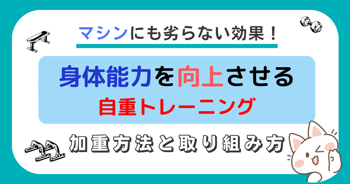 自重は「体重」という固定負荷が基本のため、調整が難しいのが弱点です。