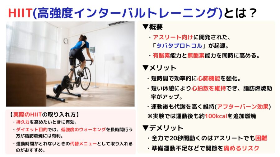 そんな方に注目されているのが、**HIIT(高強度インターバルトレーニング)**です。