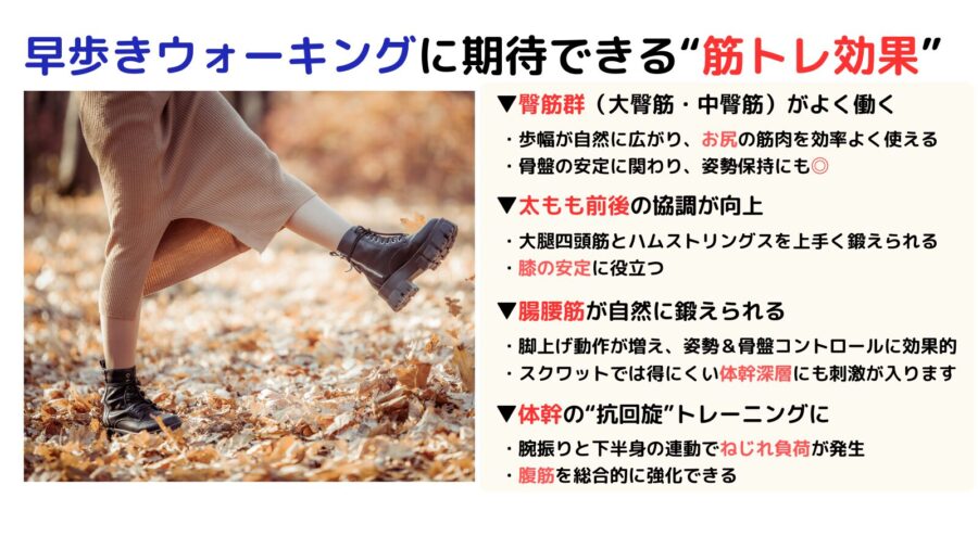 早歩きウォーキングで得られる筋トレ効果